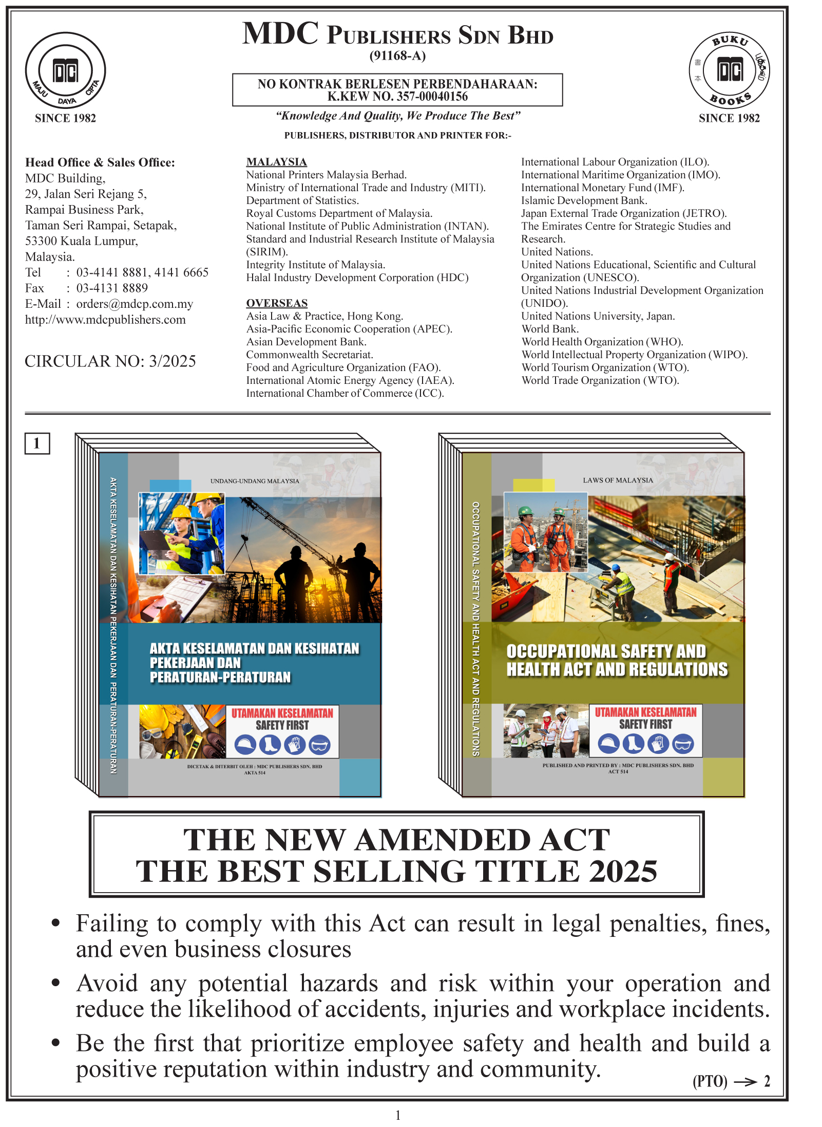 AKTA KESELAMATAN DAN KESIHATAN PEKERJAAN DAN PERATURAN-PERATURAN (Akta 514)
