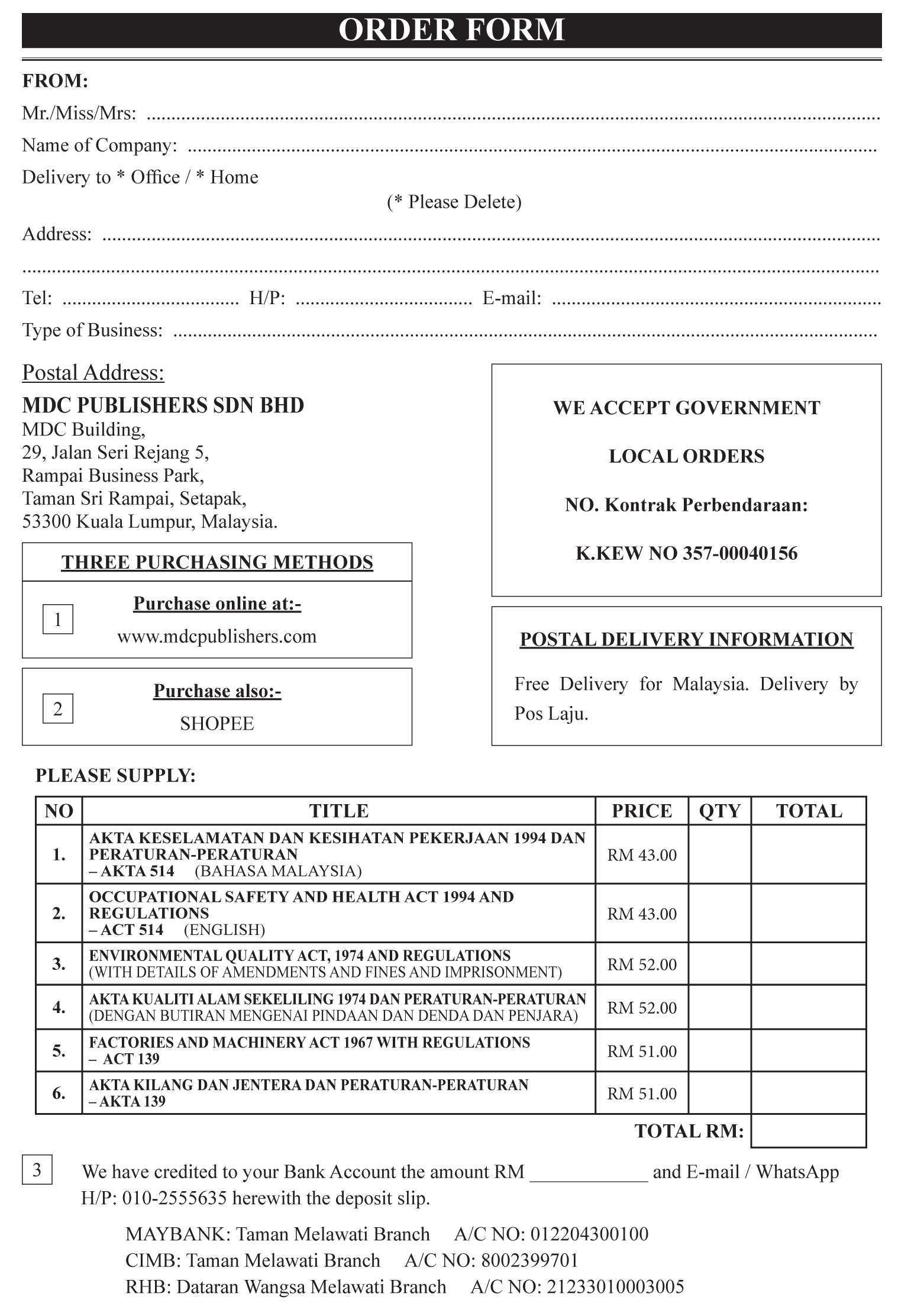 • Akta Keselamatan Dan Kesihatan Pekerjaan 1994