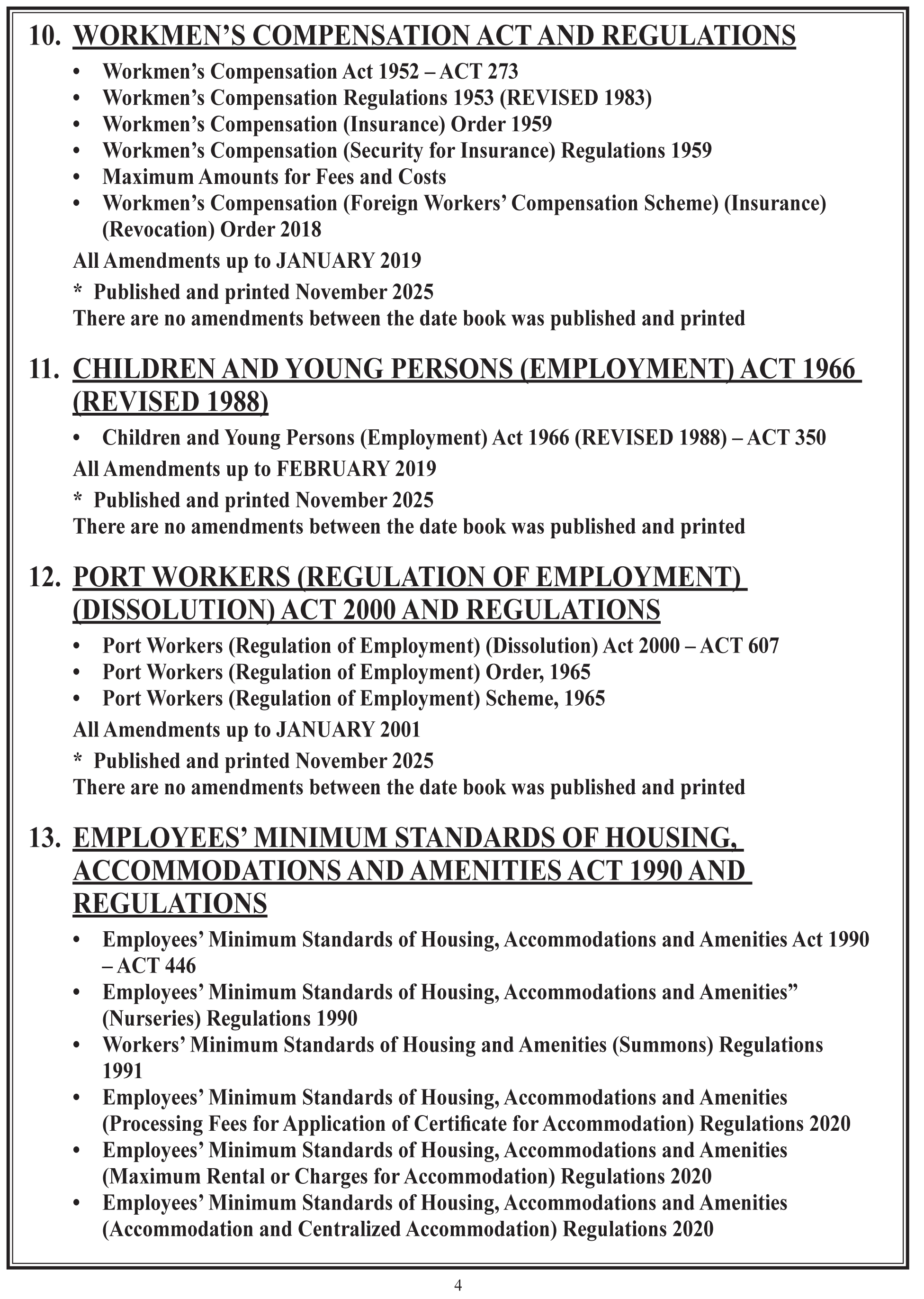 12. EMPLOYEES’ MINIMUM STANDARDS OF HOUSING, ACCOMMODATIONS AND AMENITIES ACT 1990 AND REGULATIONS