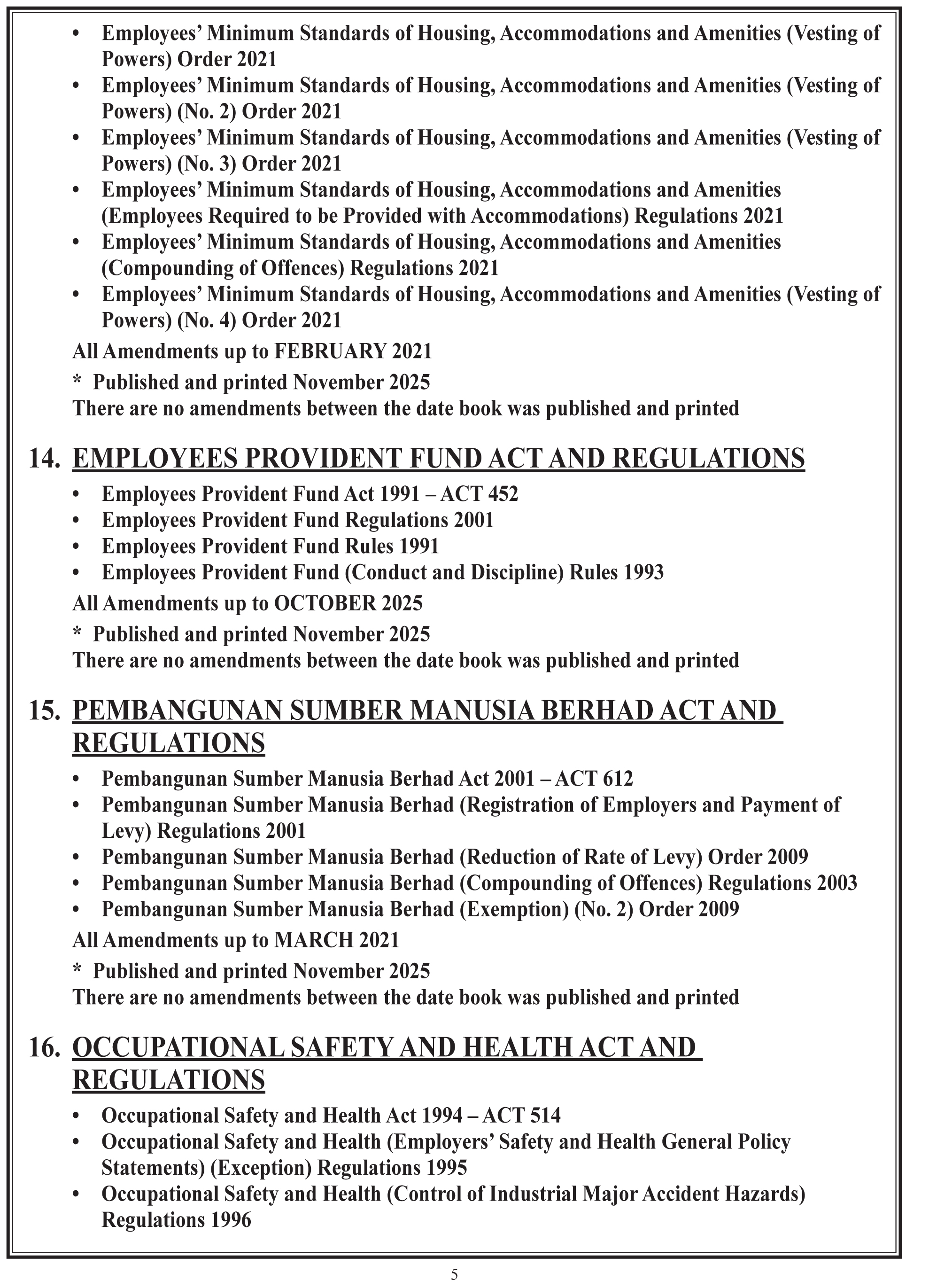 14. PEMBANGUNAN SUMBER MANUSIA BERHAD ACT AND REGULATIONS