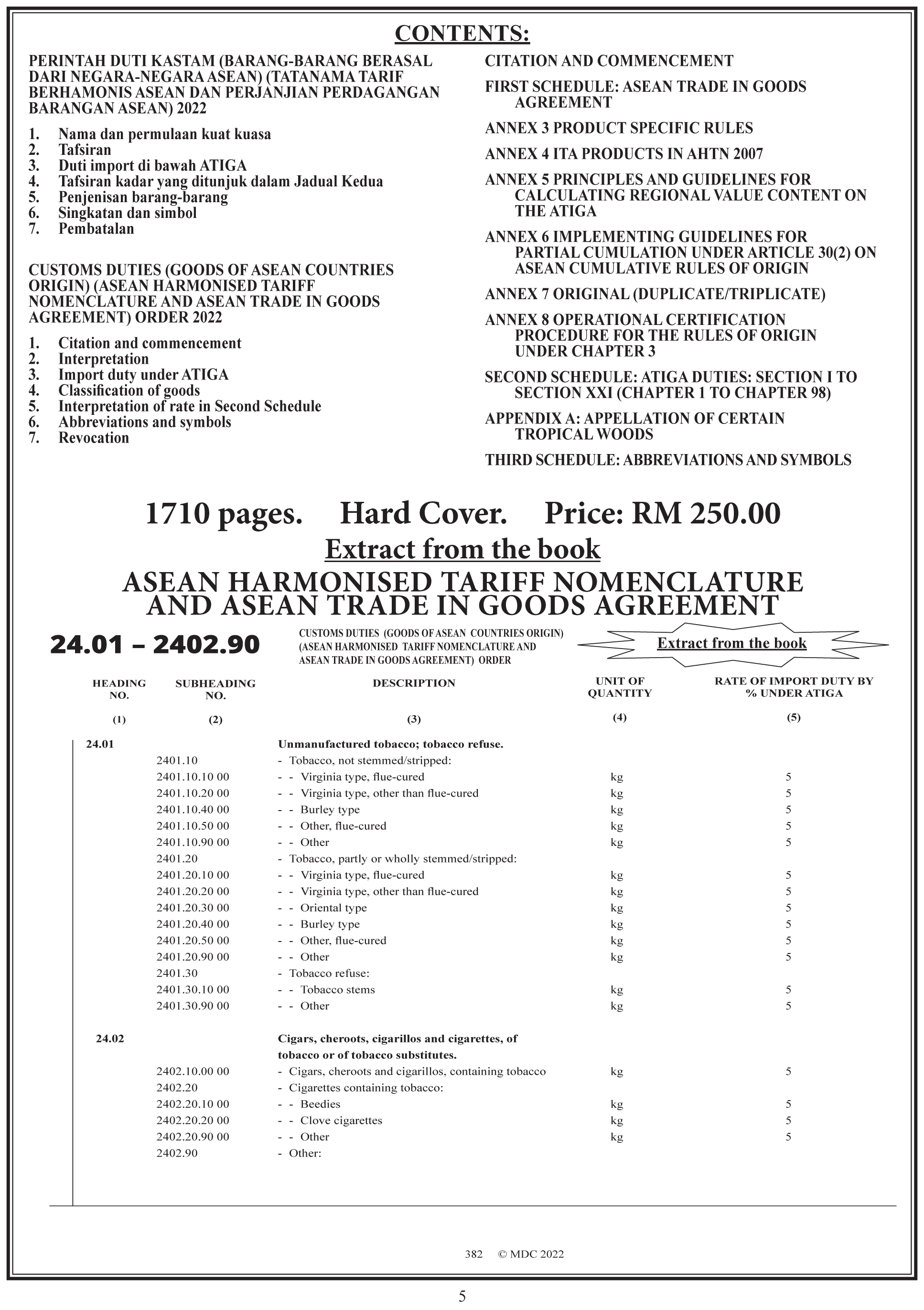 CUSTOMS DUTIES (GOODS OF ASEAN COUNTRIES ORIGIN) (ASEAN HARMONISED TARIFF NOMENCLATURE AND ASEAN TRADE IN GOODS AGREEMENT) ORDER