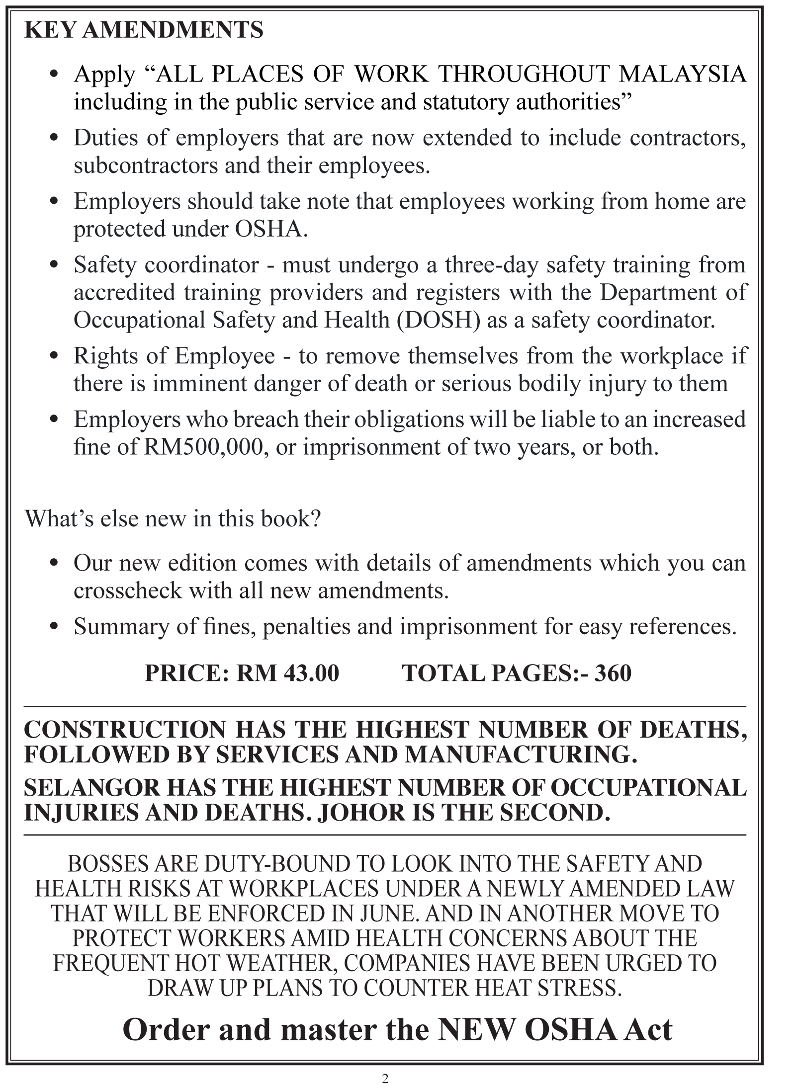 • Factories and Machinery (Administration) Regulations 1970 (Revised 1983) - P.U. (A) 110/83