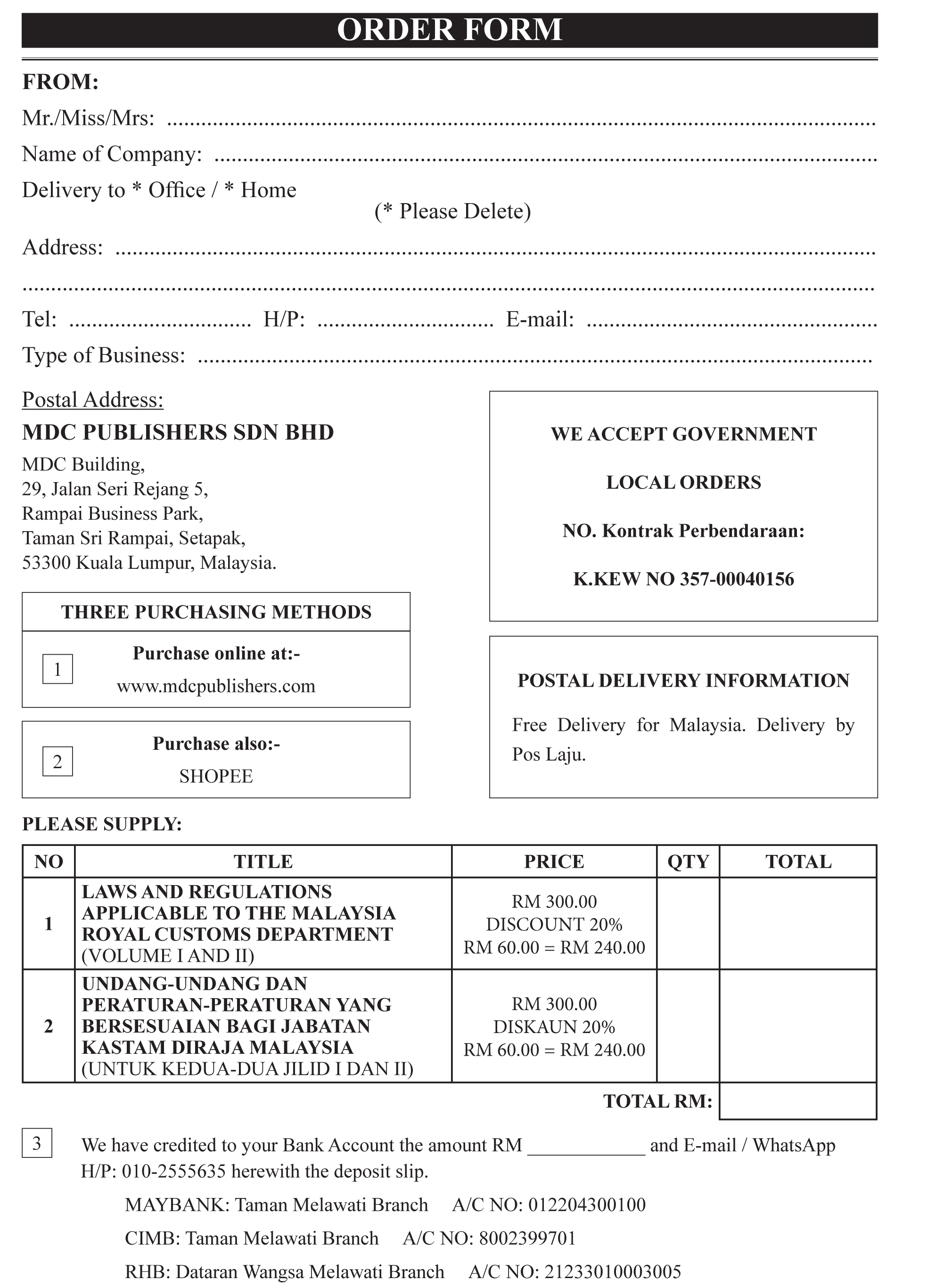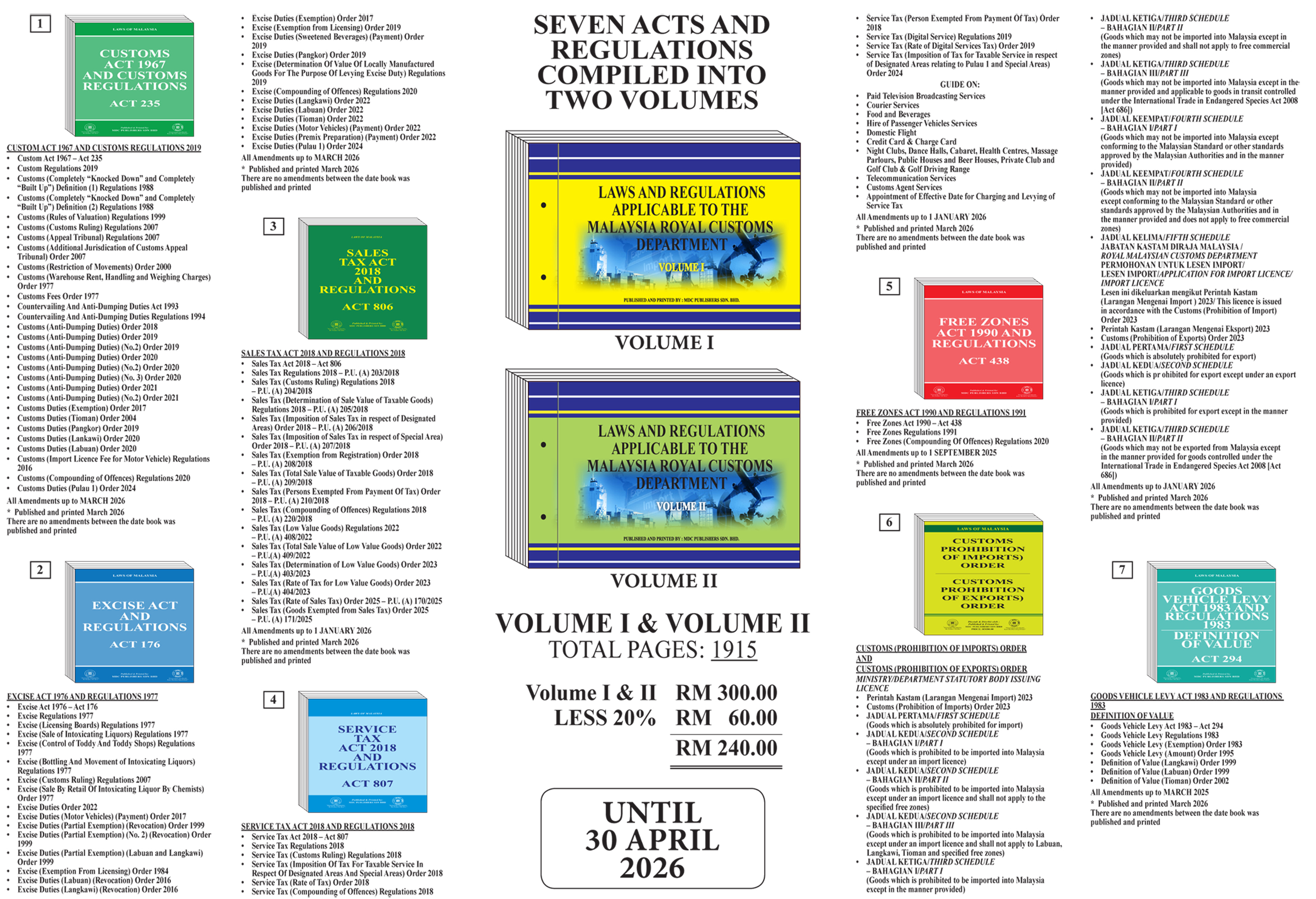 ALSO CAN PURCHASE ANY INDIVIDUAL COPY FROM 7 TITLES AND 29 MALAYSIAN CUSTOMS DEPARTMENT GUIDEBOOKS