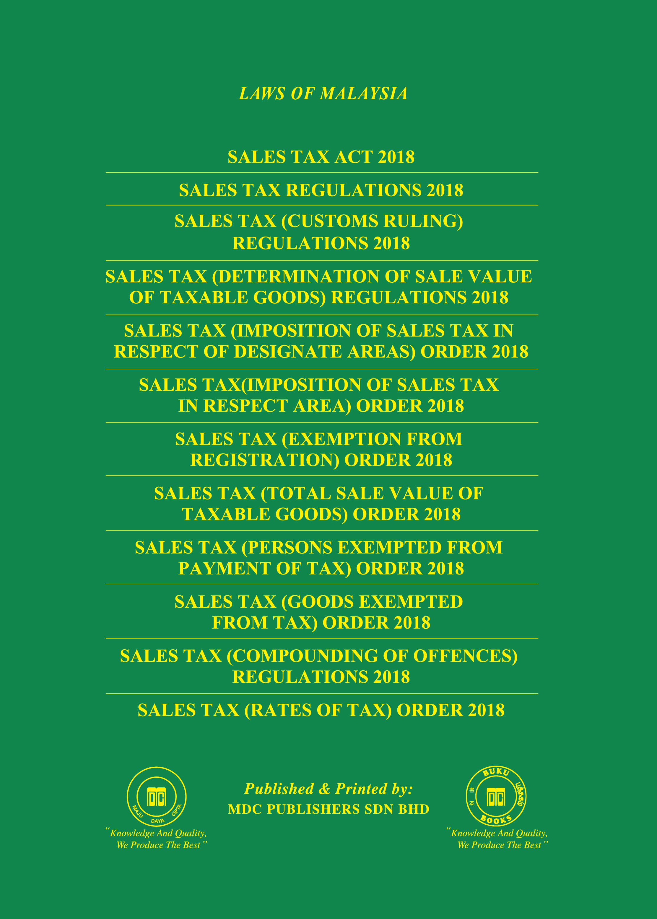 • Sales Tax (Determination of Sale Value of Taxable Goods) Regulations 2018 – P.U. (A) 205/2018