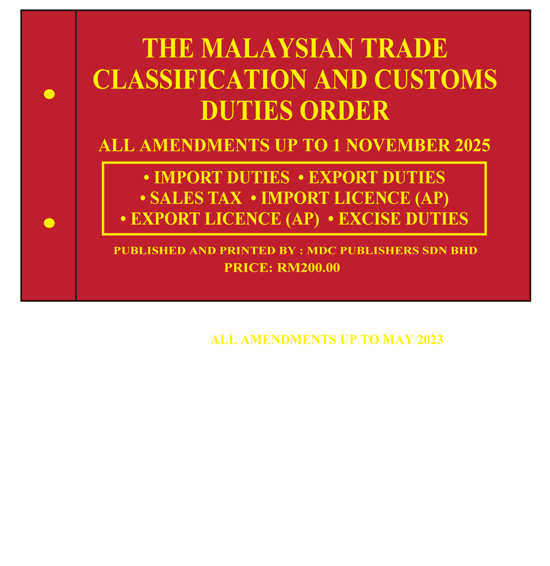 AFTER THE BUDGET, AS USUAL WE WILL PUBLISH THE BOOK THE MALAYSIAN TRADE CLASSIFICATION AND CUSTOMS DUTIES ORDER
