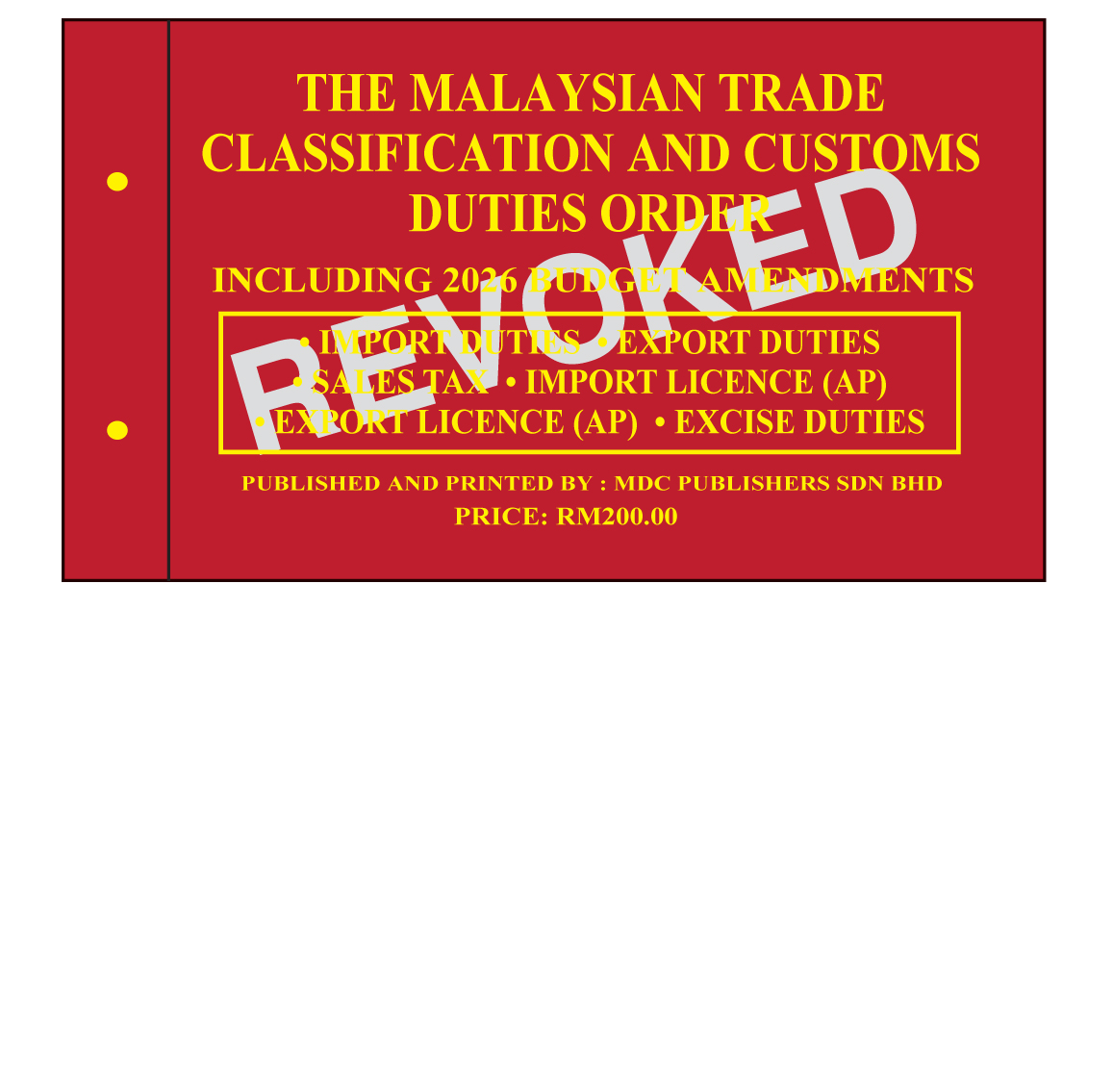 THE MALAYSIAN TRADE CLASSIFICATION AND CUSTOMS DUTIES ORDER (INCLUDING 2026 BUDGET AMENDMENTS)