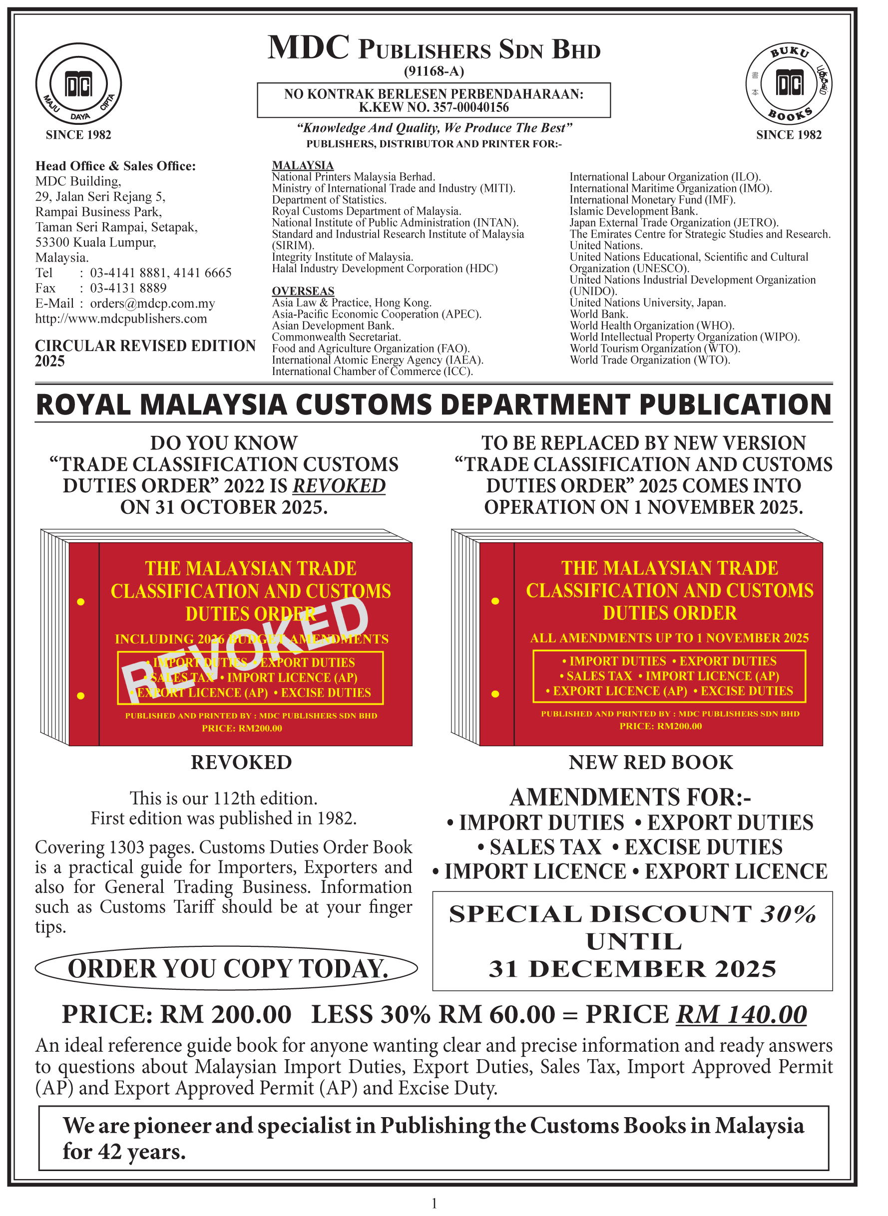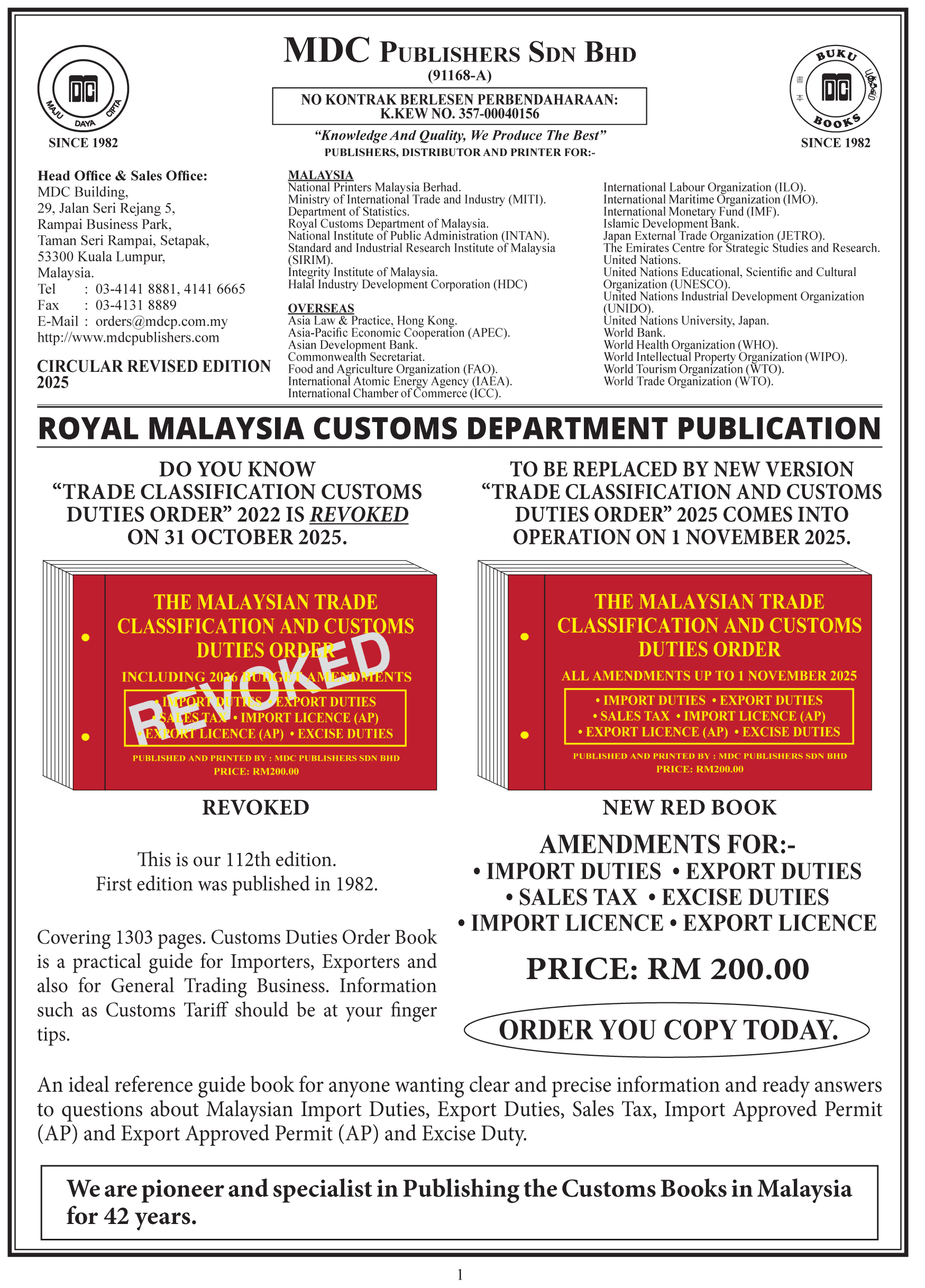 We are pioneer and specialist in Publishing the Customs Books in Malaysia for 42 years.