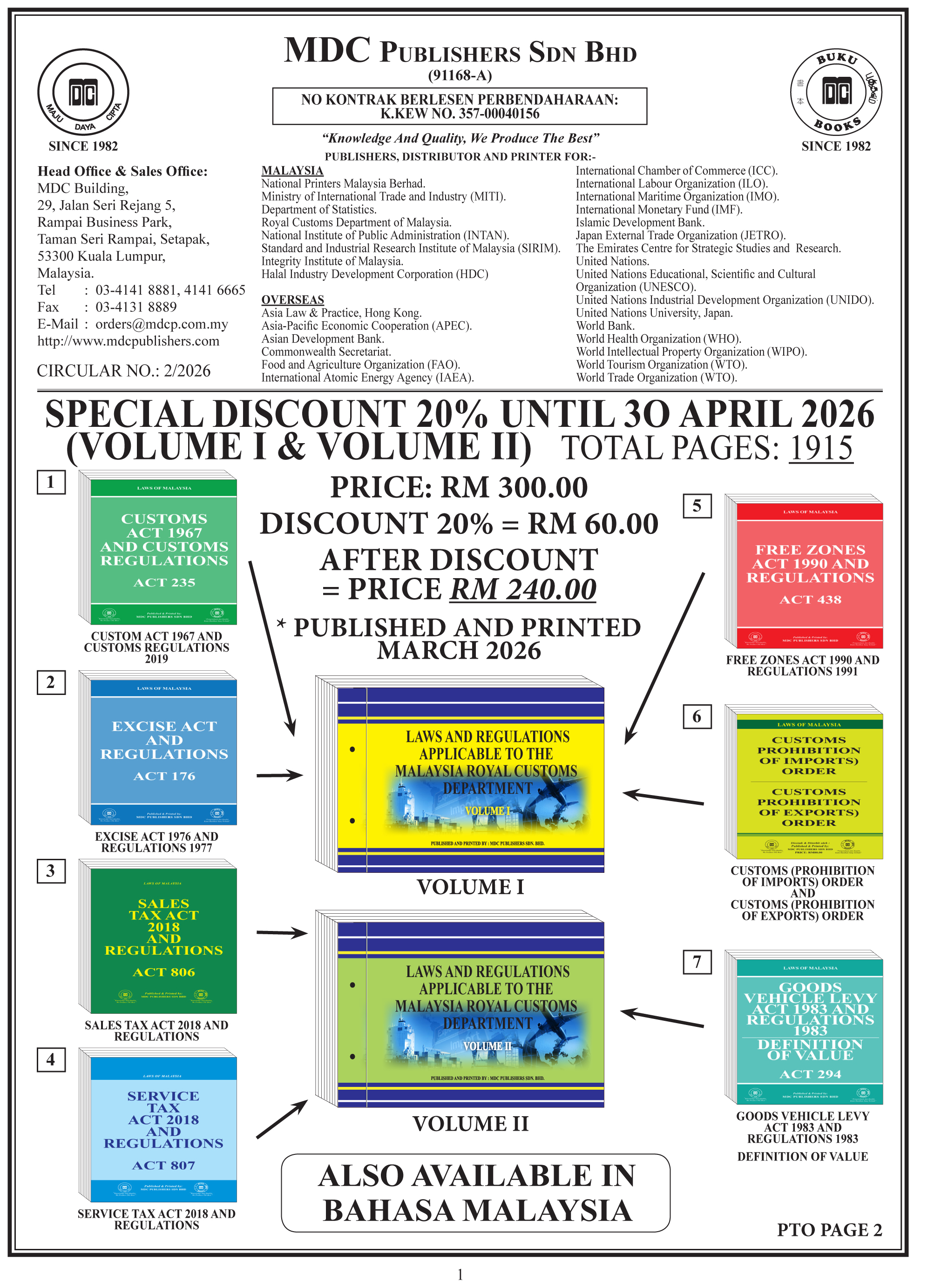 UNDANG-UNDANG DAN PERATURAN-PERATURAN YANG BERSESUAIAN BAGI JABATAN KASTAM DIRAJA MALAYSIA (JILID I DAN II)